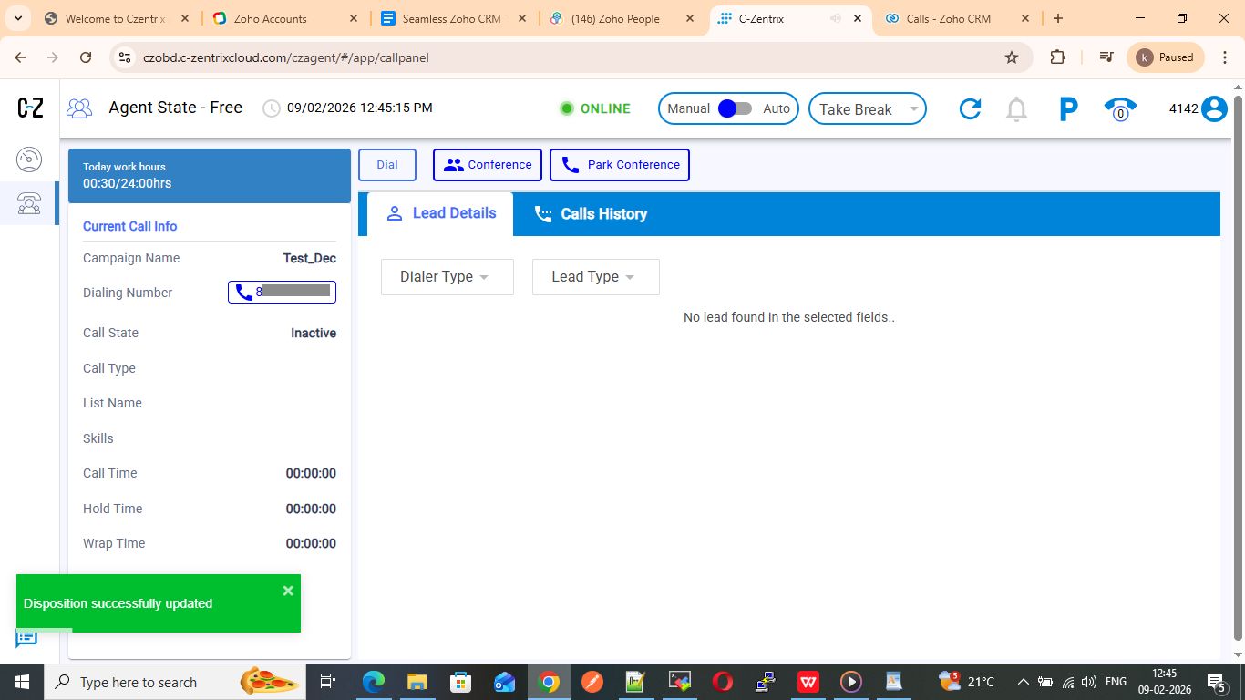 In ZOHO page write the Call Disposition and its Description and click on Done